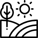 - Pradera, mesas para comer al aire libre.